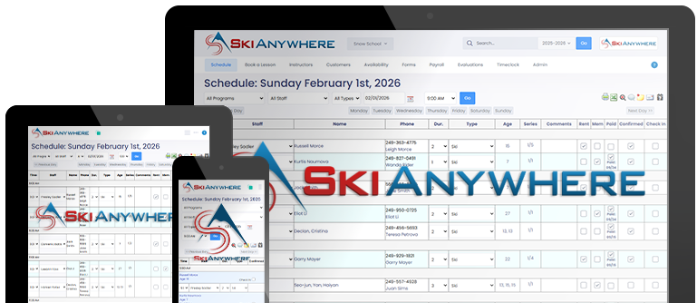 Ski Anywhere works on desktop, tablet, and mobile, so staff, instructors, and guests can access what they need wherever they are on the mountain.